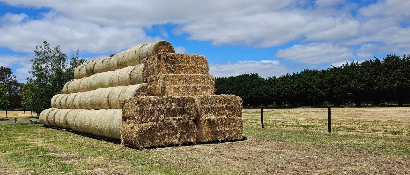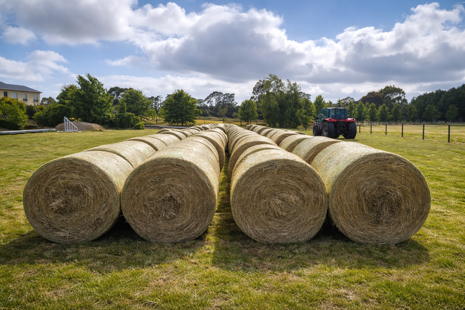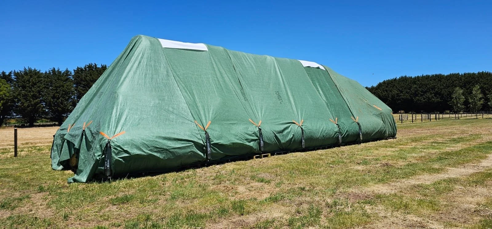 TOPTEX® covers protect outdoor hay and straw from rain while staying breathable, reducing moisture, mould, and feed loss.
